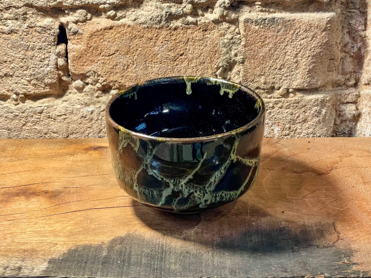 Különleges technikával mázazott, kézműves chawan, a japán Arita városából.