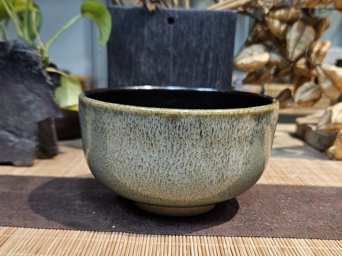 A csésze formája stabil és jól fogható; pereme enyhén ívelt, hogy a matcha felhabosítása kényelmes és egyenletes legyen.