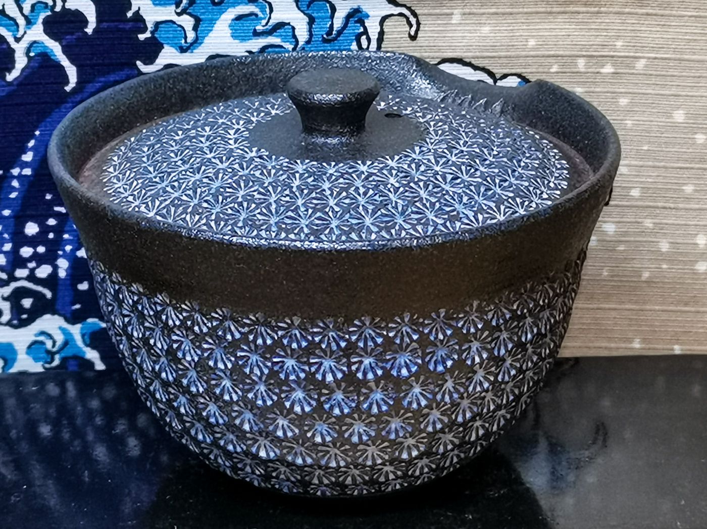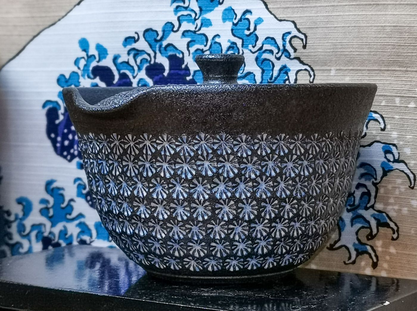 A fedelén is szűrő nyílásokkal ellátott, precíziós, tökéletesen záró és – gyorsan – töltő kanna, gyakorlatilag bármilyen tea elkészítéséhez. Belül is mázas, könnyen elmosható kerámia, így az esetlegesen egymástól nagyon különböző aromájú teákat is nyugodtan készíthetjük benne egymás után. Elegáns és szép darab, a teázó asztal középpontjába helyezhető kanna.