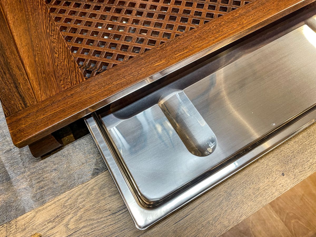 A teatálca legfontosabb funkciója a víz felfogása és elvezetése. A teaceremónia során gyakran használnak sok vizet a tealevelek és a teáskannák öblítésére, valamint a csészék felmelegítésére, ami bőséges vízhasználatot jelent. A teatálca alján található lefolyónyílások vagy a beépített víztartály segítségével a fölösleges víz eltávolítható, így az asztal vagy a környezet tiszta marad.