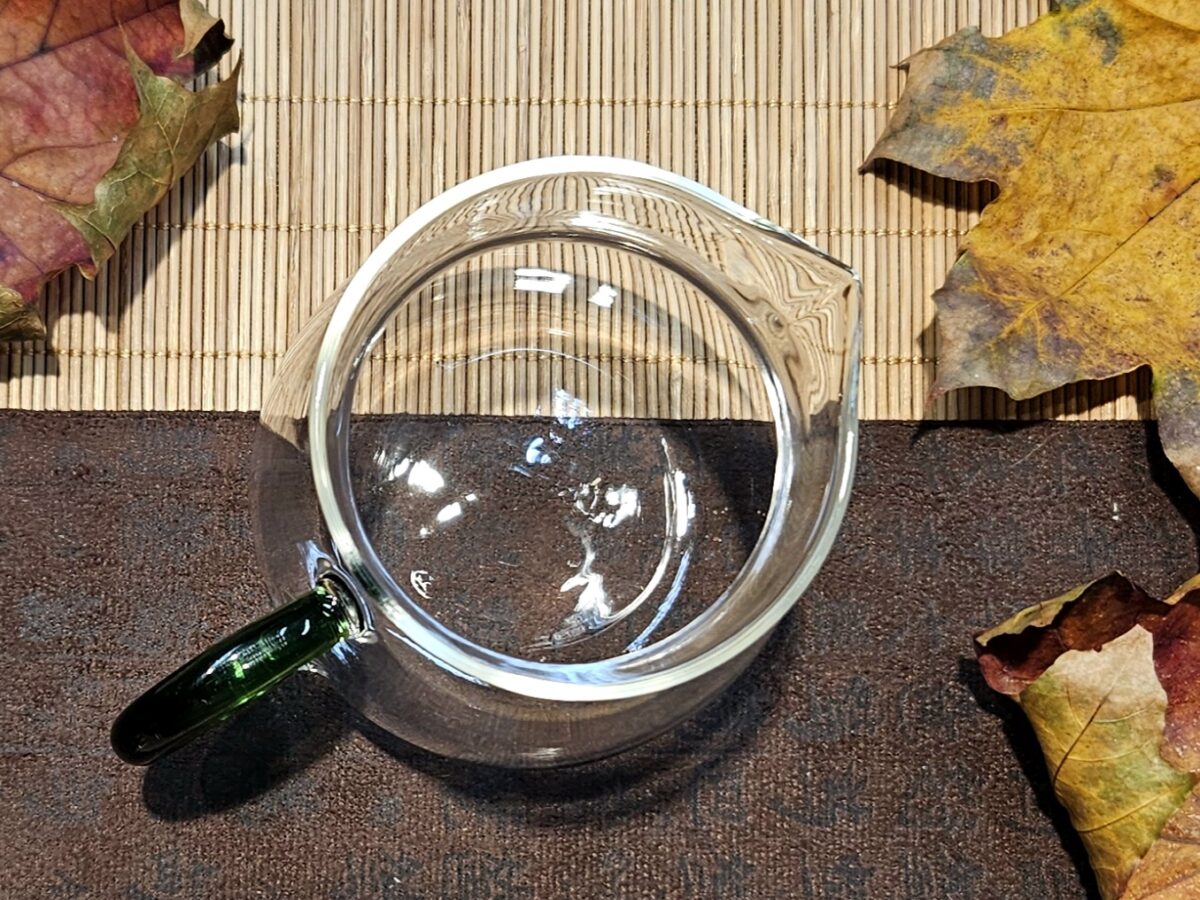 Zöld fogantyús, stabil kiállású, kis méretű üvegkiöntő, 250ml