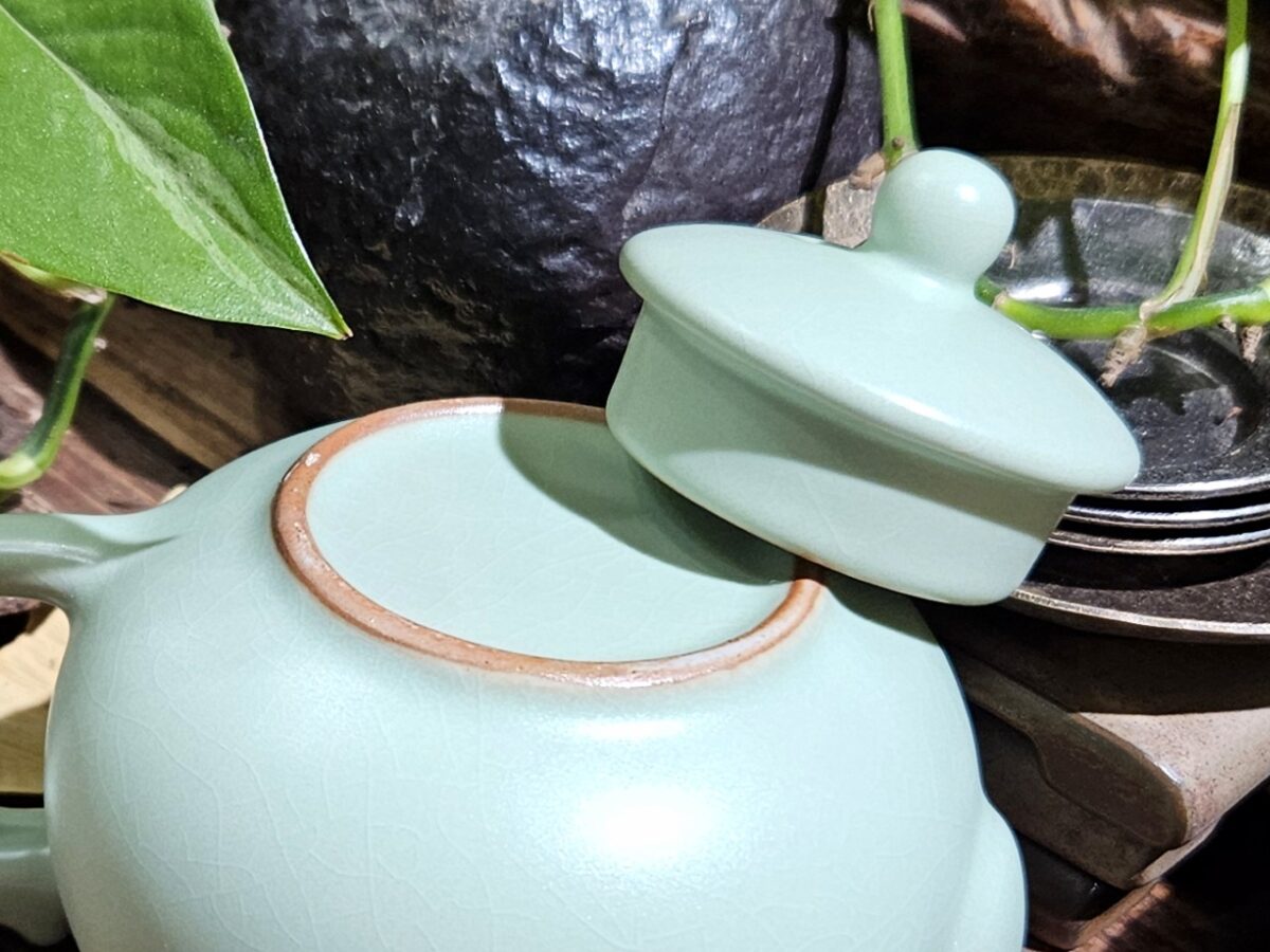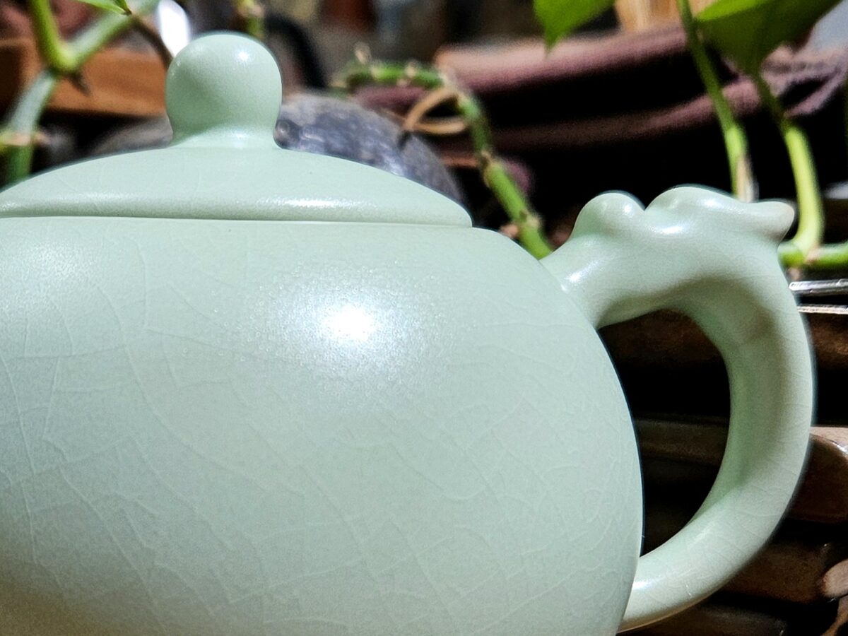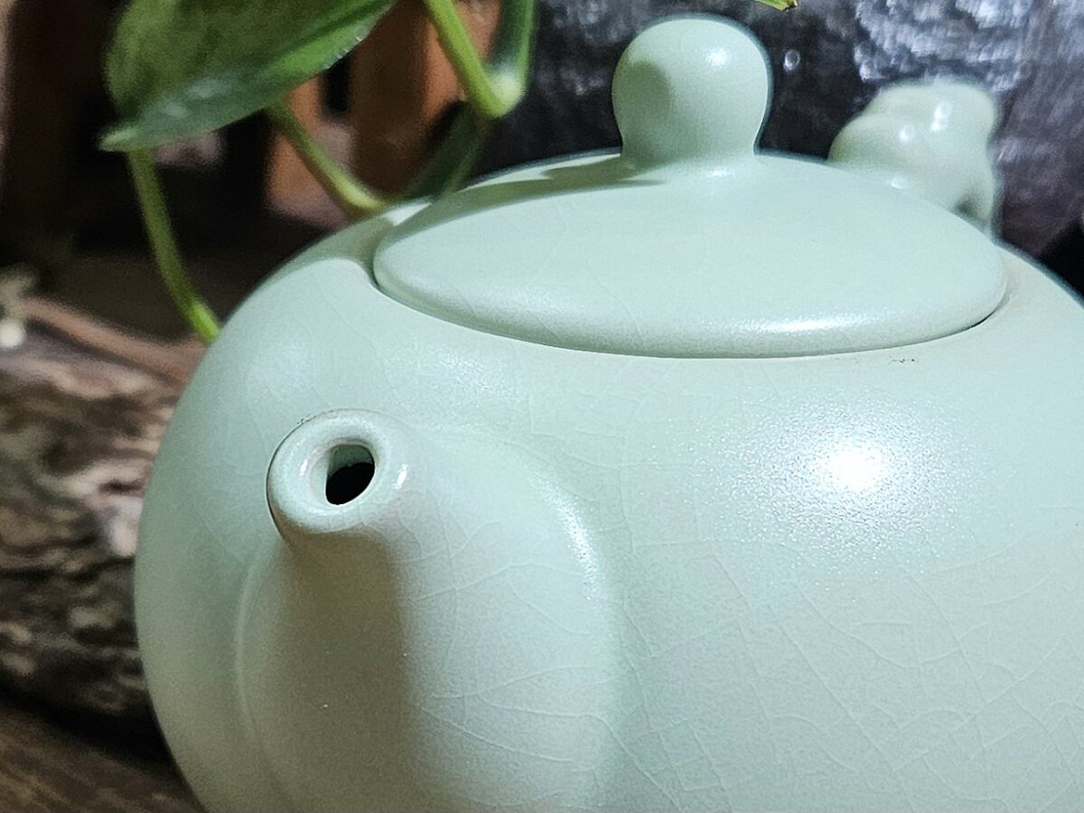 Viaszos fényű,antik hangulatú, kékes árnyalatú, Xi Shi formájú Ru kerámia kanna.