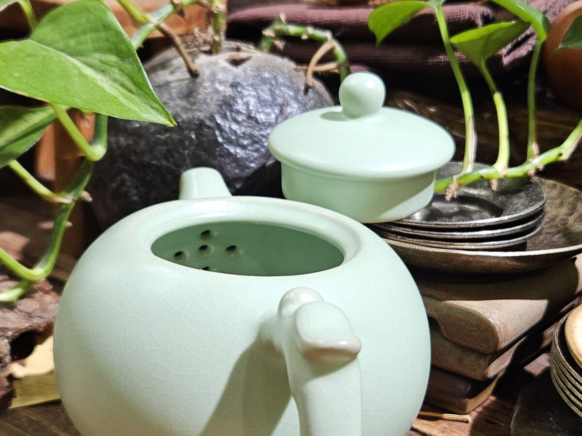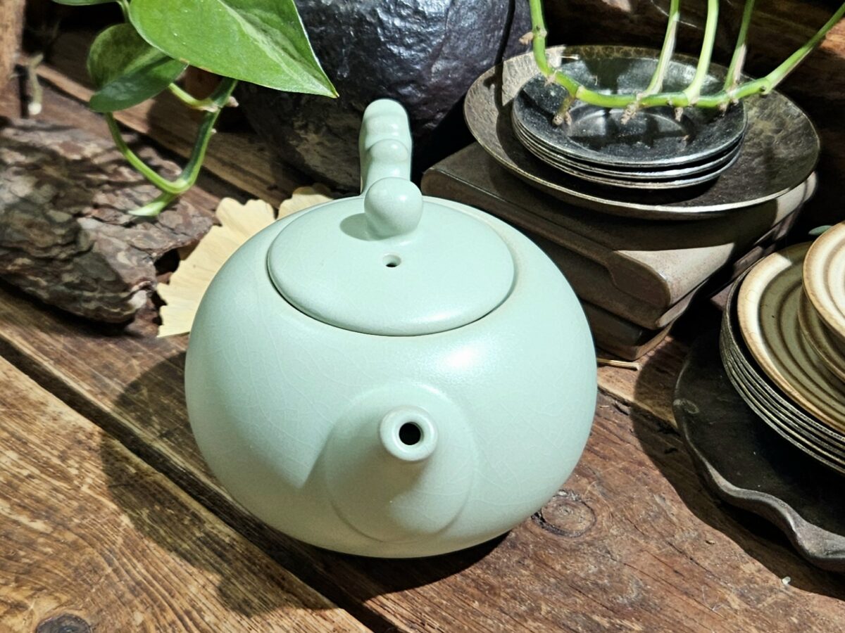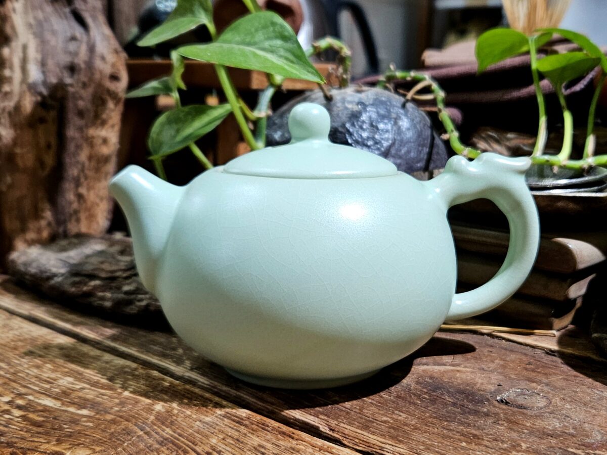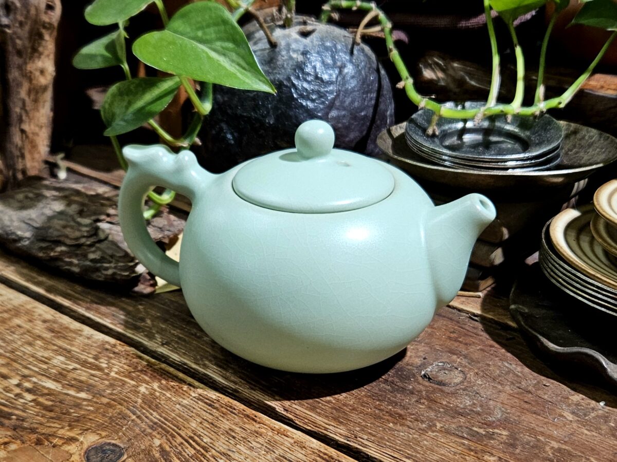 Viaszos fényű,antik hangulatú, kékes árnyalatú, Xi Shi formájú Ru kerámia kanna.